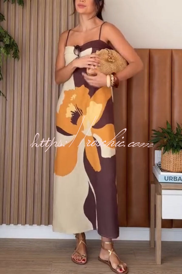 Light Breeze Color-block Floral Print Adjustable Strap H-line Midi Dress